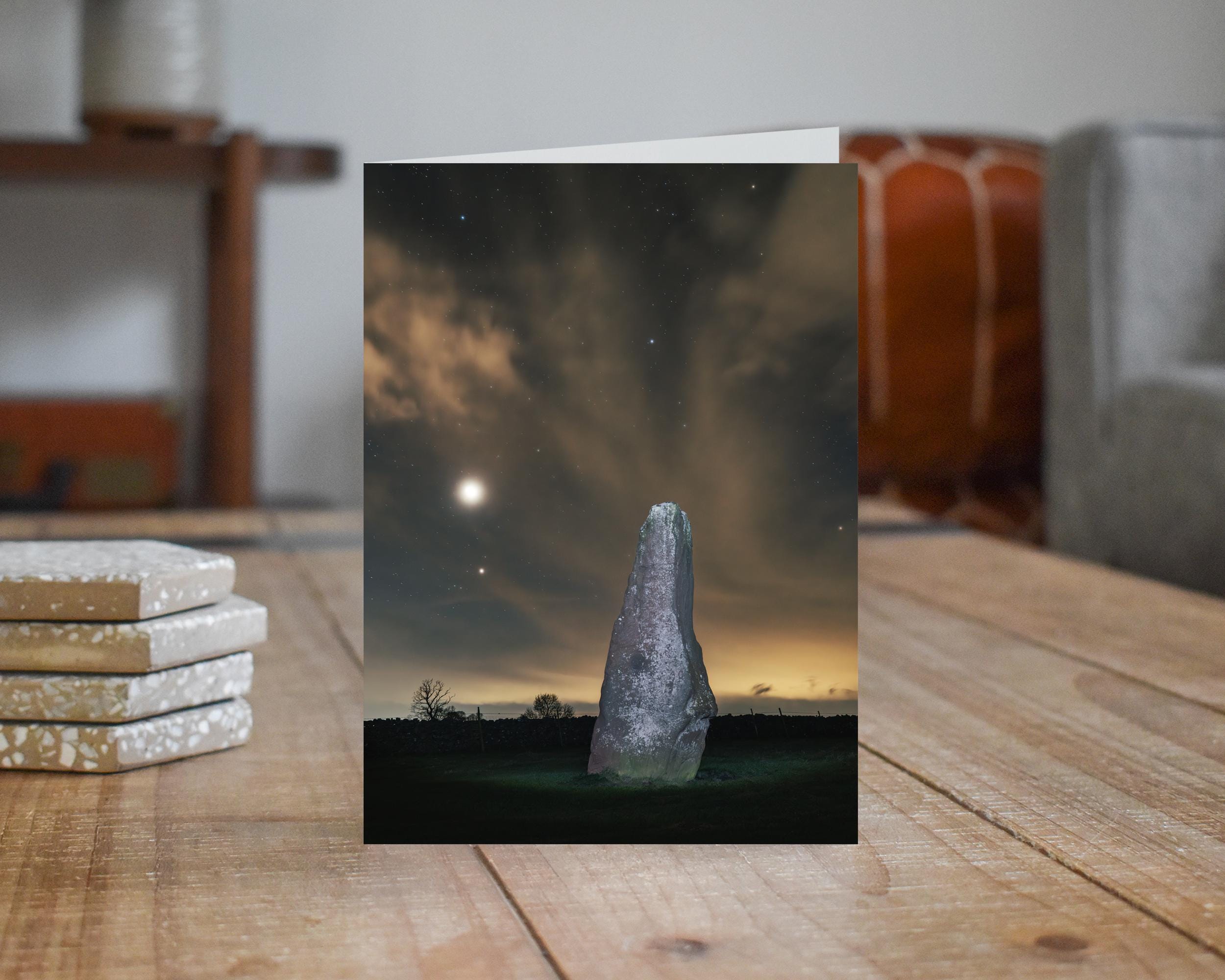 Vale of Eden Greeting Card • Venus and Saturn beyond Long Meg
