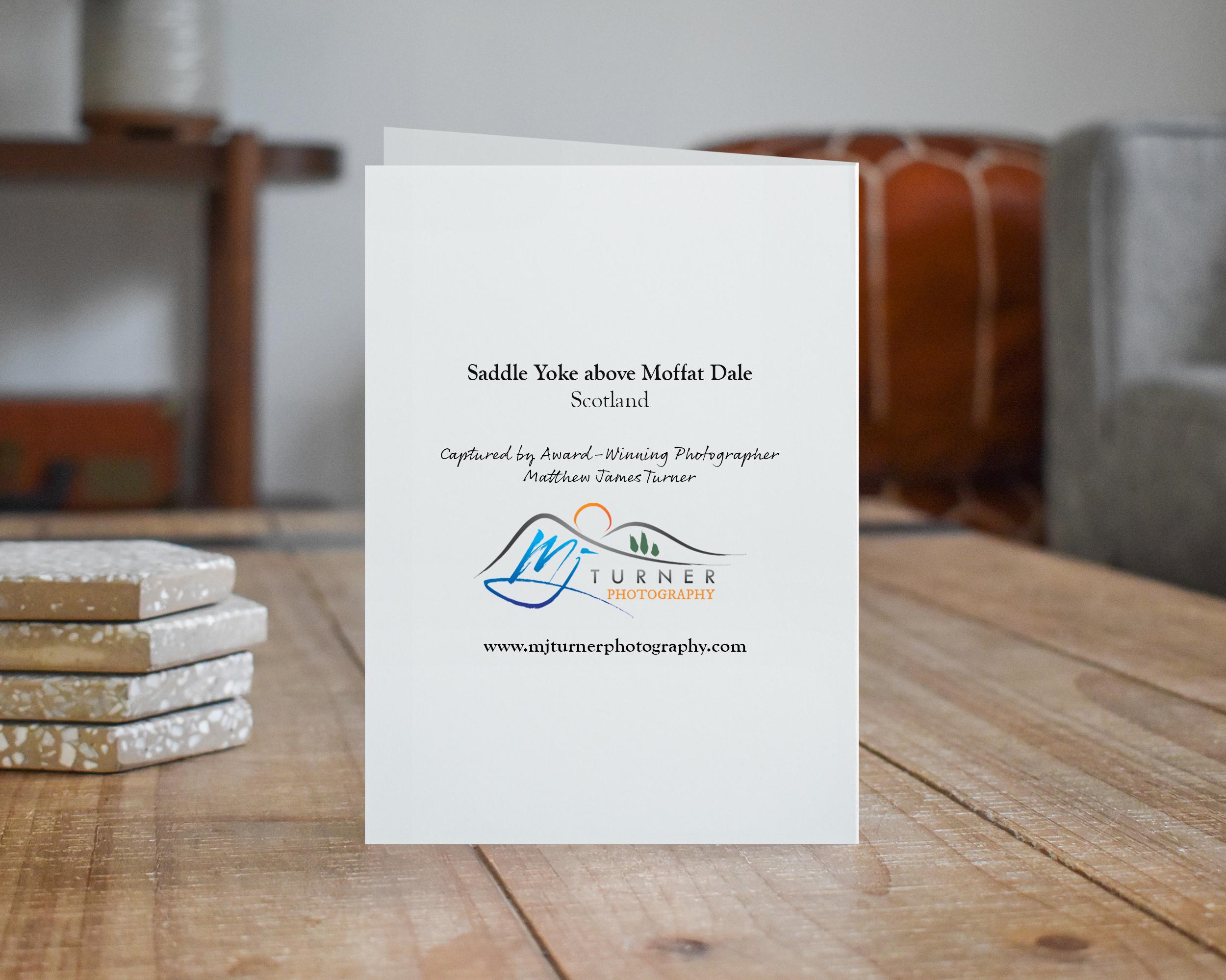 Follow in the footsteps of award-winning photographer Matthew James Turner and journey to the windswept wilderness of the Southern Uplands of Scotland with this captivating greeting card featuring an original and carefully crafted scenic portrait. Offering a picturesque portal into the region's remote corners, this card will undoubtedly inspire anyone to head outdoors. But for those who can't, it's the next best thing.