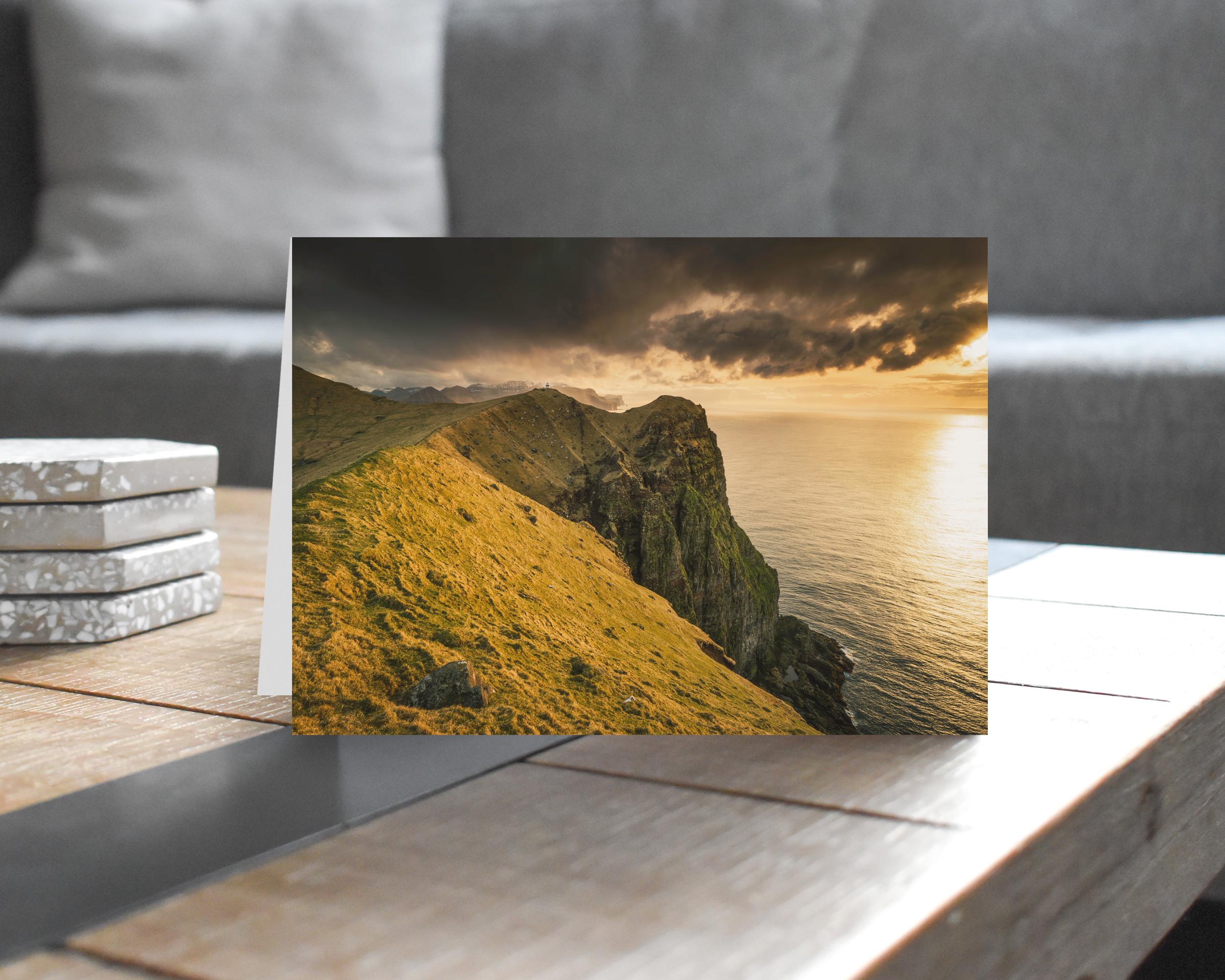 Experience the magic of the Faroe Islands through the lens of award-winning photographer Matthew James Turner with this exquisite greeting card, featuring a carefully crafted scenic portrait. Each glance at this stunning artwork inspires dreams of adventures as well as a deeper appreciation of nature's wonders. For those who may not have the chance to embark on an adventure to this otherworldly destination, this card serves as a picturesque portal, igniting the wanderer’s soul within.